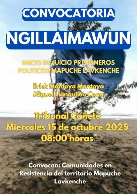 Convocatoria Ngillaimawun inicio de juicio Prisioneros Políticos Mapuche Lavquenche, 15/10/2025, Tribunales de Cañete