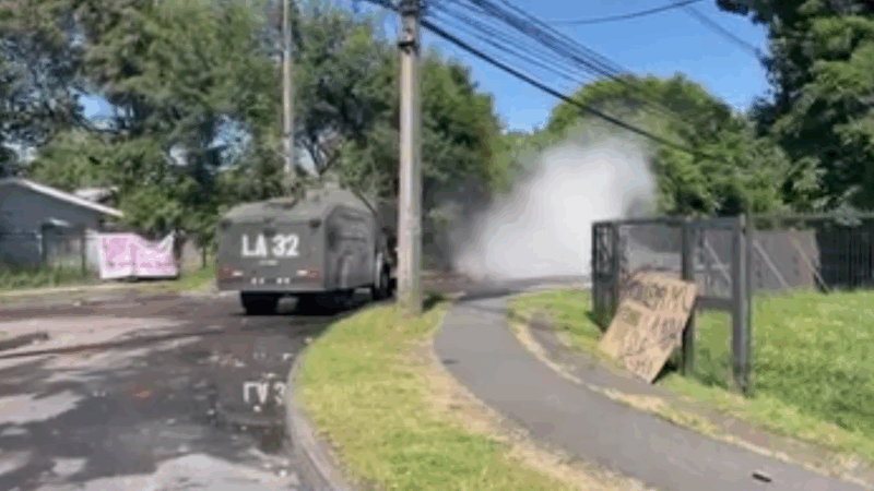En este contexto de conmemoración, carabineros de fuerzas especiales de Temuco, no sólo reprimieron la manifestación, sino que ingresaron de forma violenta e ilegal al interior del hogar, llevándose detenida desde el interior a una persona.