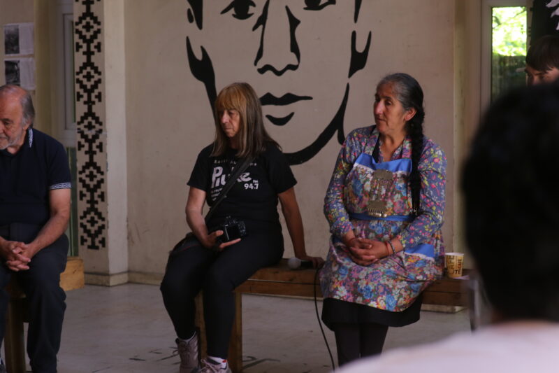Luego fue el turno para la intervension de la lamgen Ana Catrileo España quien pudo relatar los conflictos de las comunidades mapuche que se encuentran en la Warria “Pienso que todos los estados, tanto de derecha o izquierda son de la misma posición política, pero nosotros como ambientalistas, como personas que defienden la medicina, los humedales, los menokos, los mallines como le dicen los mapuche, la naturaleza, la protección al medio ambiente…yo soy de la comunidad de la Warria Juan Currin, donde tengo un humedal y un menoko, por que tengo medicina ancestral, tengo agua de trayenko, llafenko, ahi donde la Machi saca el agua para hacer su rogativa… mi comunidad ha sido reprimida, he tenido enfrentamiento también con la policía en este gobierno, cuando fue el estallido social, como soy de una comunidad que esta en la warria, en la ciudad, he tenido allanamiento… me reventaron mi casa como se dice vulgarmente, han detenido a mi marido, a mi hijo, hemos estado allanados aquí en plena ciudad, entonces imaginense que les espera a las ñanas que viven fuera de la ciudad, he sido golpeada, he sido masacrada, me han quebraron la clavícula… como dice el winka, por una soberbia lucha, pero no es soberbia luchar por nuestro ideal como mapuche, enfrentar cada situacion que nosotros tenemos como gente de la tierra, por que la tierra es lo fundamental para la existencia del pueblo mapuche…”.