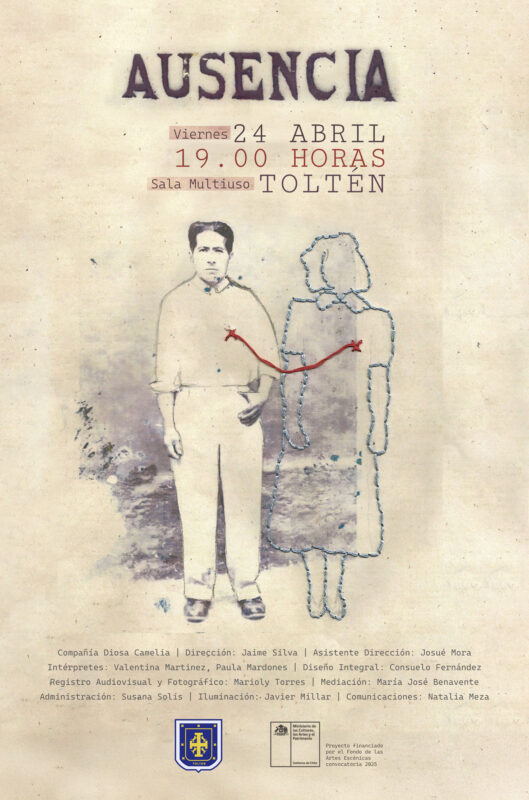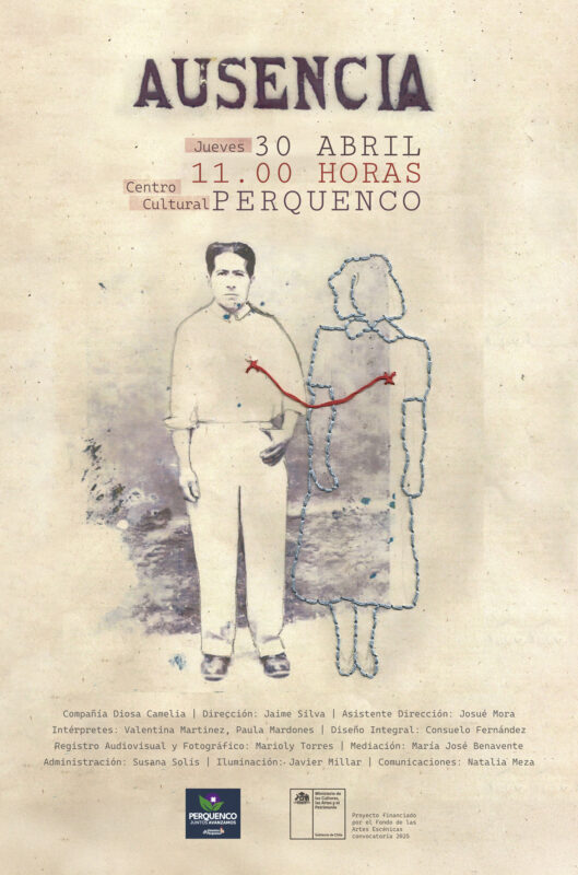 La obra integra distintos lenguajes como el teatro, la danza, el circo, el canto y la manipulación de marionetas, construyendo una experiencia sensible que invita a reflexionar sobre la pérdida, la memoria y la dimensión comunitaria del dolor. A través de relatos cotidianos y escenas cargadas de simbolismo, «Ausencia» propone abrir un espacio poco habitual en la vida contemporánea: detenerse a pensar la muerte y sus significados. Esta obra ha sido financiada por el Fondo de las Artes Escénicas / Creación y/o producción de montajes escénicos / Interdisciplinar del Ministerio de culturas, arte y patrimonio de Chile 2025.