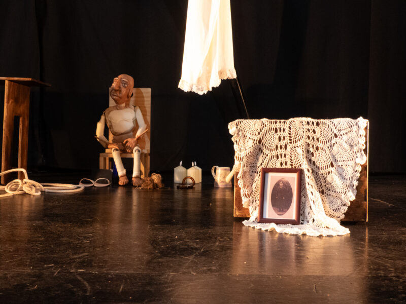 En escena, los intérpretes transitan entre lo biográfico y lo simbólico, compartiendo experiencias personales y dando vida a distintos universos escénicos. Uno de los ejes centrales es la historia de Gastón, una marioneta que encarna a un hombre mayor enfrentado a la reciente pérdida de su esposa, revelando la soledad, los recuerdos y los vínculos que persisten a través de los objetos y la memoria.