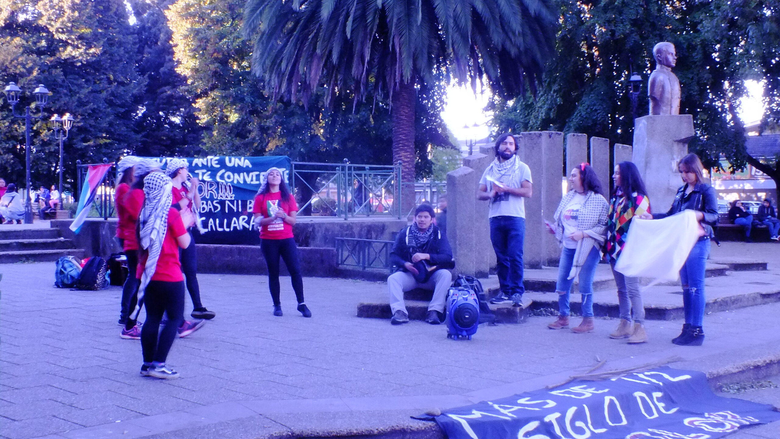 El pasado cinco de abril en plaza Dagoberto Godoy de Temuko se realizó una mitin e intervención por el día de la tierra, día que conmemora la lucha del pueblo palestino por el territorio arrebatado a manos de Israel.